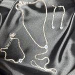Вишуканий жіночий набір прикрас із срібла – ланцюг 32,5 см, браслет 19 см та елегантні сережки. Декорований блискучими камінцями, цей комплект ідеально доповнить весільний образ, підкреслить ніжність і витонченість нареченої. Постачається в стильній подарунковій коробці.