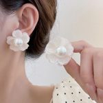 Сережки жіночі квітка велика з перлиною СБЖ-0027