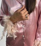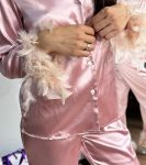 Шовкова піжама для дружок нареченої з пір’ям індика рожевого кольору