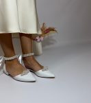 | Жіночі балетки Весільні шкіряні з ремінцем з перлами та брошкою перли (знімається) |