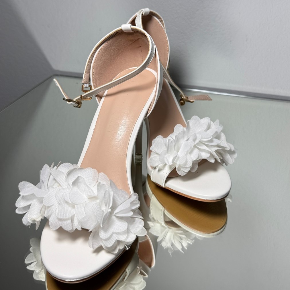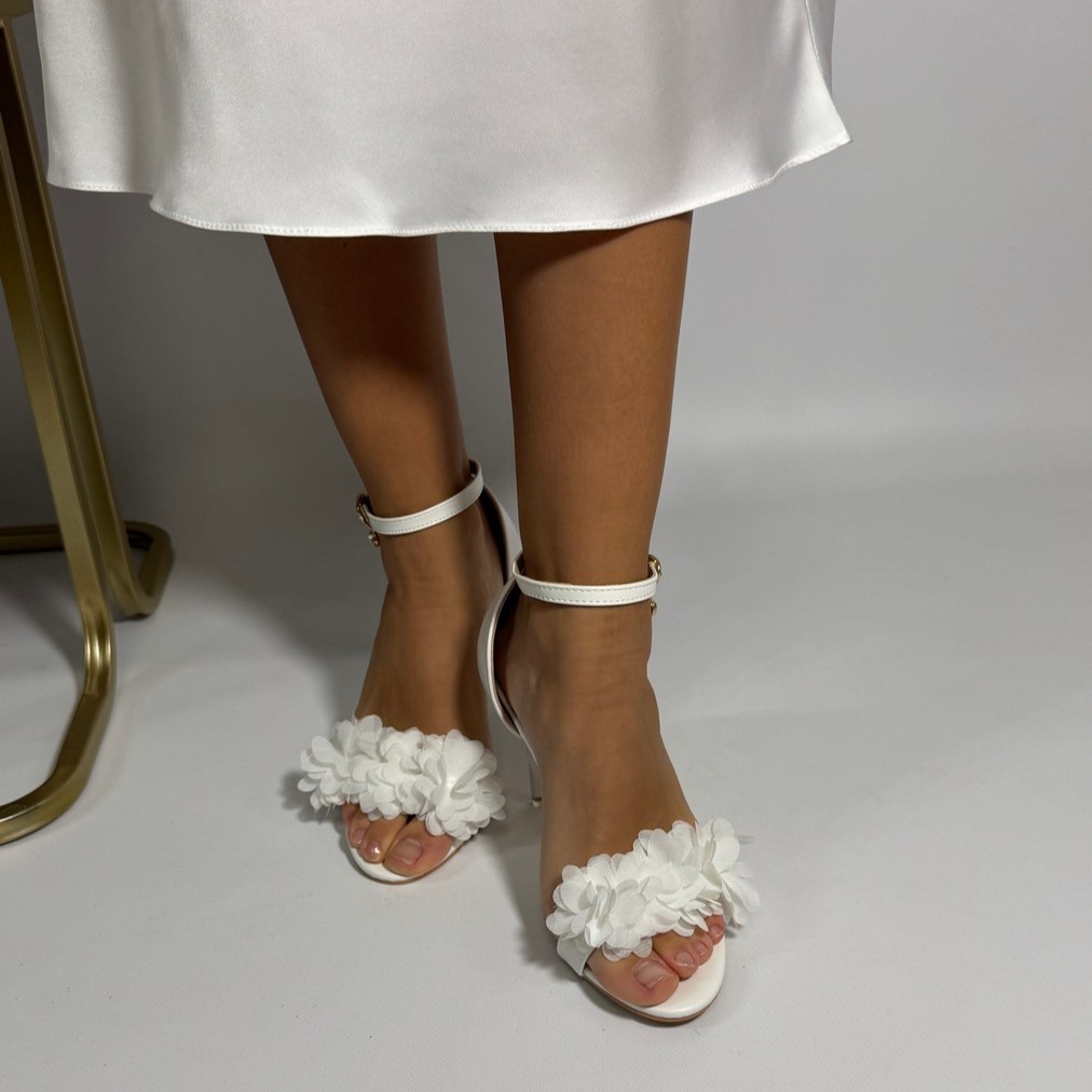 Елегантні весільні босоніжки на підборах 11 см, оздоблені ніжними квітами. Ідеальний вибір для нареченої, що прагне вишуканого та романтичного образу у свій особливий день.