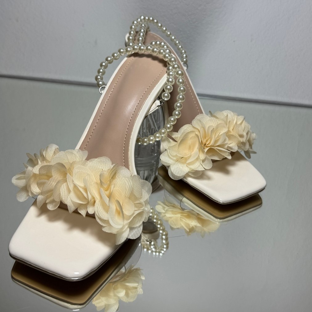 Жіночі босоніжки з перлами та квітами 9,7 см