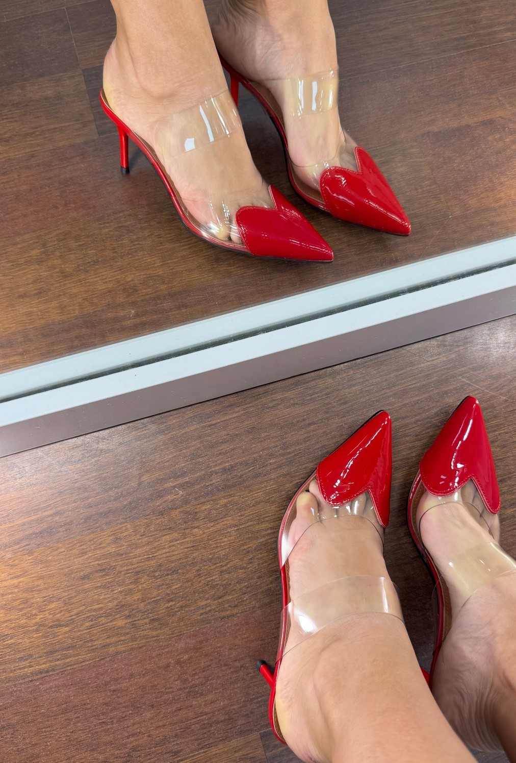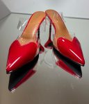 Трендові силіконові туфлі на підборі 7 см у  червоному кольорі. Ефектний носик із малюнком у формі серця додає оригінальності. Стильне взуття для особливих образів.