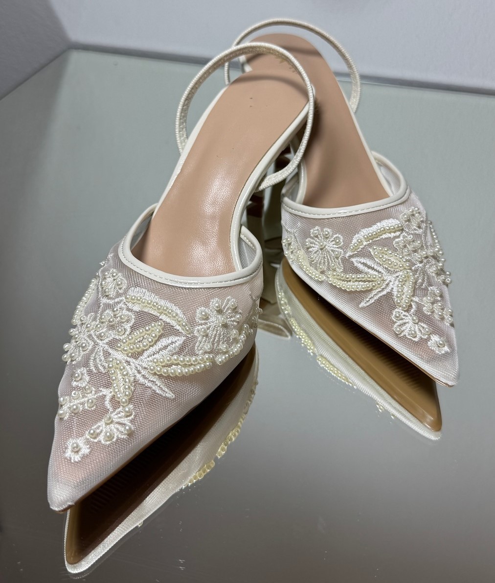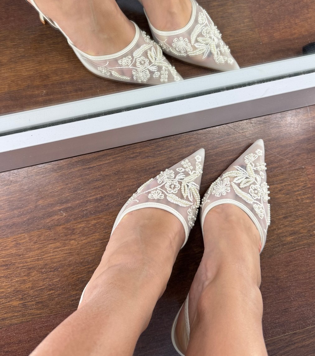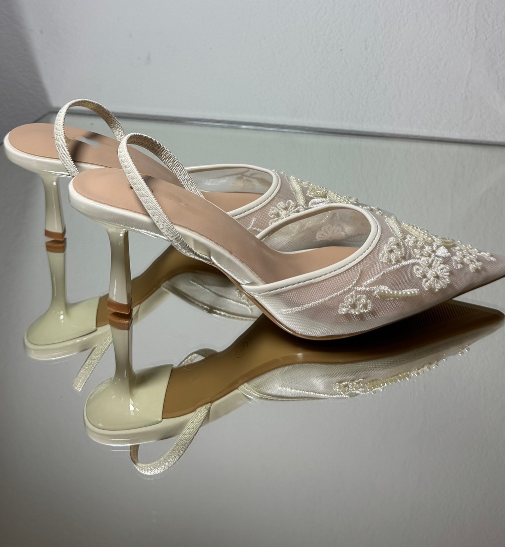 Ніжні весільні туфлі слінгбек з мереживом та витонченою вишивкою. Легка посадка, елегантний дизайн і романтичний настрій — ідеальний вибір для особливого дня нареченої.