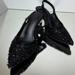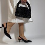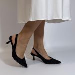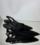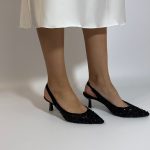 Елегантні жіночі туфлі-слінгбеки чорного кольору з витонченим декором із бісеру. Стильний дизайн із відкритою п’ятою, зручна колодка та стійкий підбор 6,5 см забезпечують комфорт протягом усього дня. Ідеальний вибір для урочистостей і вечірніх виходів.
