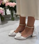 Жіночі туфлі Весільні атласні ремінцем з перлами та брошкою квітка (знімається) 5 см