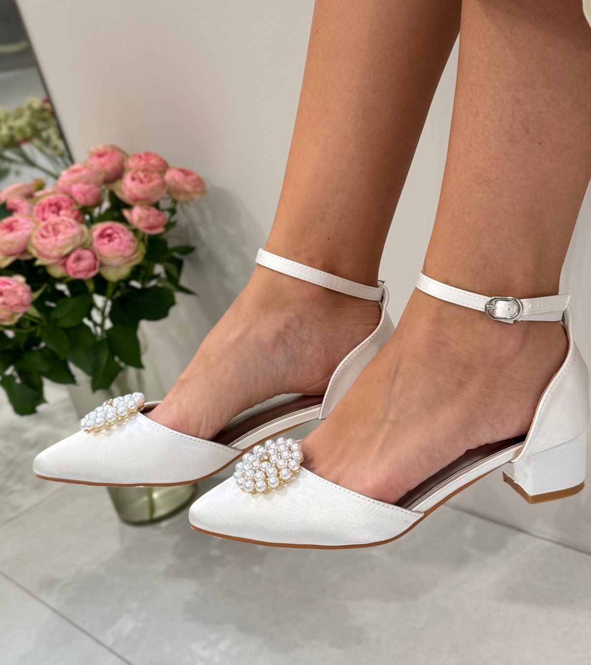 Весільні атласні жіночі туфлі на стійких квадратних підборах 4 см — ідеальне поєднання комфорту та стилю. Два образи в одному: знімна брошка у формі квітів створює акцент, а без неї взуття набуває лаконічного вигляду. Ідеальний вибір для нареченої.