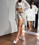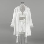 Шовковий весільний халат із топом та шортами для нареченої, оздоблений розкішним пір’ям страуса. Легкий, ніжний і елегантний комплект для ранку нареченої чи романтичного вечора.